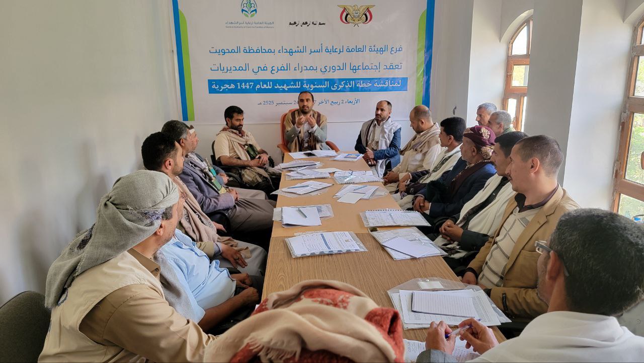 فرع الهيئة العامة لرعاية أسر الشهداء بمحافظة حجة يعقد اجتماعه الدوري لمناقشة خطة الذكرى السنوية للشهيد1447ه