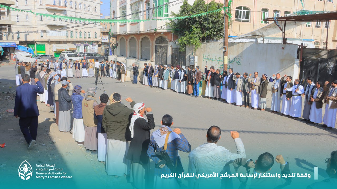 الهيئة العامة لرعاية أسر الشهداء تنظم وقفة تنديد واستنكار للإساءة الأمريكية للقرآن الكريم