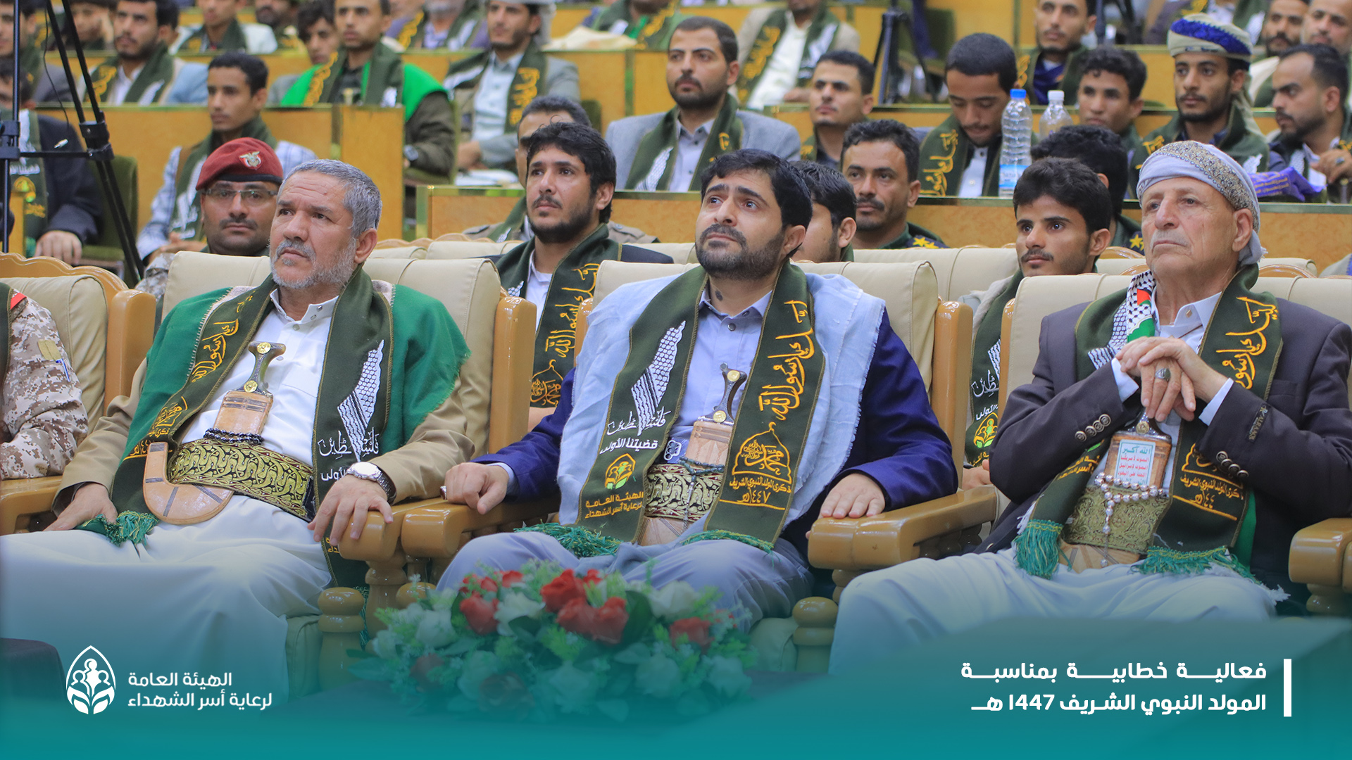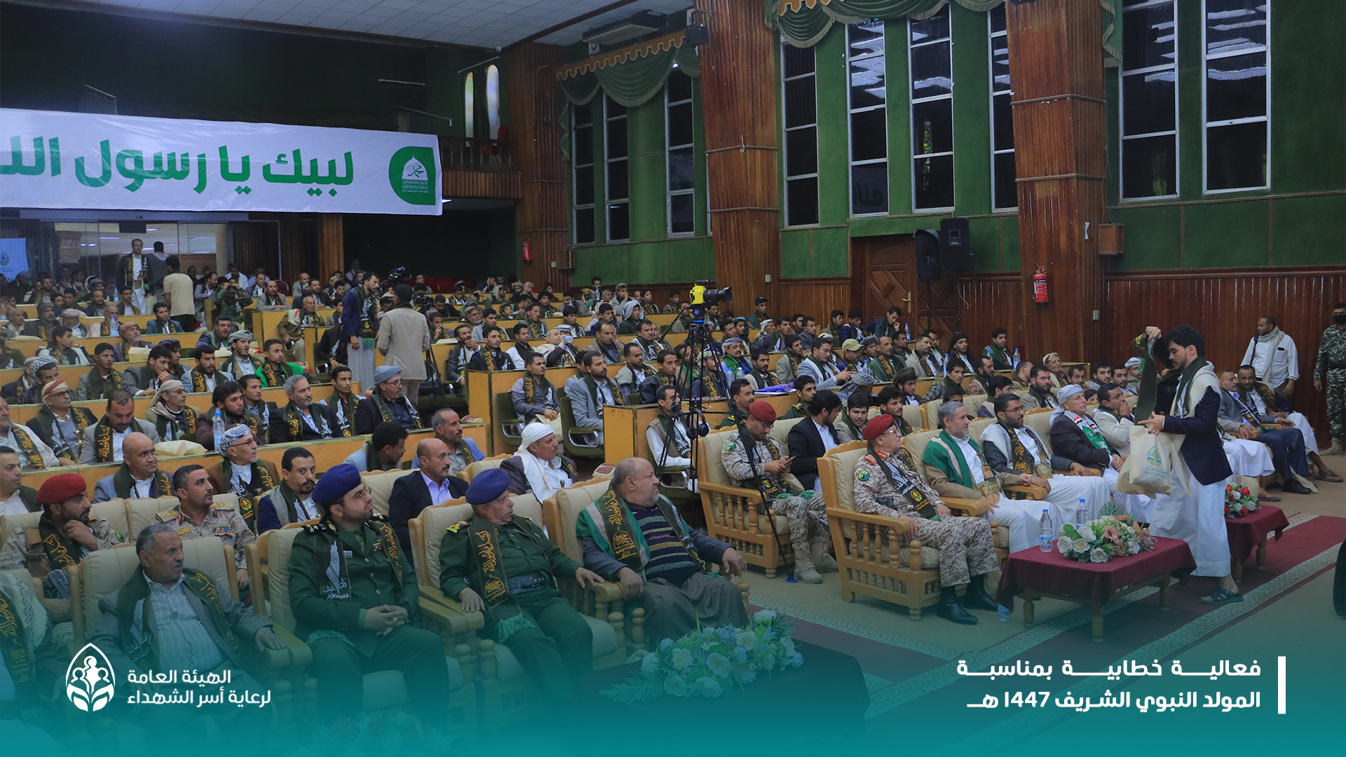 نظّمت الهيئة العامة لرعاية أسر الشهداء والمفقودين اليوم في العاصمة صنعاء فعالية خطابية ابتهاجًا بذكرى المولد النبوي الشريف. حضر الفعالية وزير الشباب والرياضة الدكتور محمد المولّد، ومساعد وزير الدفاع لشؤون الموارد البشرية اللواء الركن علي الكحلاني، ورئيس الهيئة العامة لرعاية أسر الشهداء طه جران، ورئيس هيئة الأراضي إبراهيم المنصور. وخلال الفعالية، أكد مستشار الهيئة العامة لرعاية أسر الشهداء عبدالسلام الطالبي أن إحياء فعاليات المولد النبوي يمثل رسالة قوية تعبّر عن عظمة الرسول الأعظم في وجدان اليمنيين جيلًا بعد جيل، وتجسد التمسك بالمبادئ والقيم التي جاء بها، مشيرًا إلى أهمية تعظيم هذه المناسبة لتصحيح واقع الأمة ومواجهة الأخطار التي فرضتها قوى الطاغوت والاستكبار العالمي. كما شدد على جاهزية قيادة الهيئة وكوادرها للحضور المشرف في هذه المناسبة الغالية على قلوب أبناء اليمن الأحرار. تخللت الفعالية قصيدة للشاعر بديع الزمان، وقصيدة لأبن الشهيد جواد الشمري وفقرة إنشادية للمنشد محمد المحفدي وفرقة التراث الشعبي، إلى جانب عرض تلفزيوني لتوجيهات قائد الثورة السيد عبدالملك بدر الدين الحوثي حول المناسبة.
