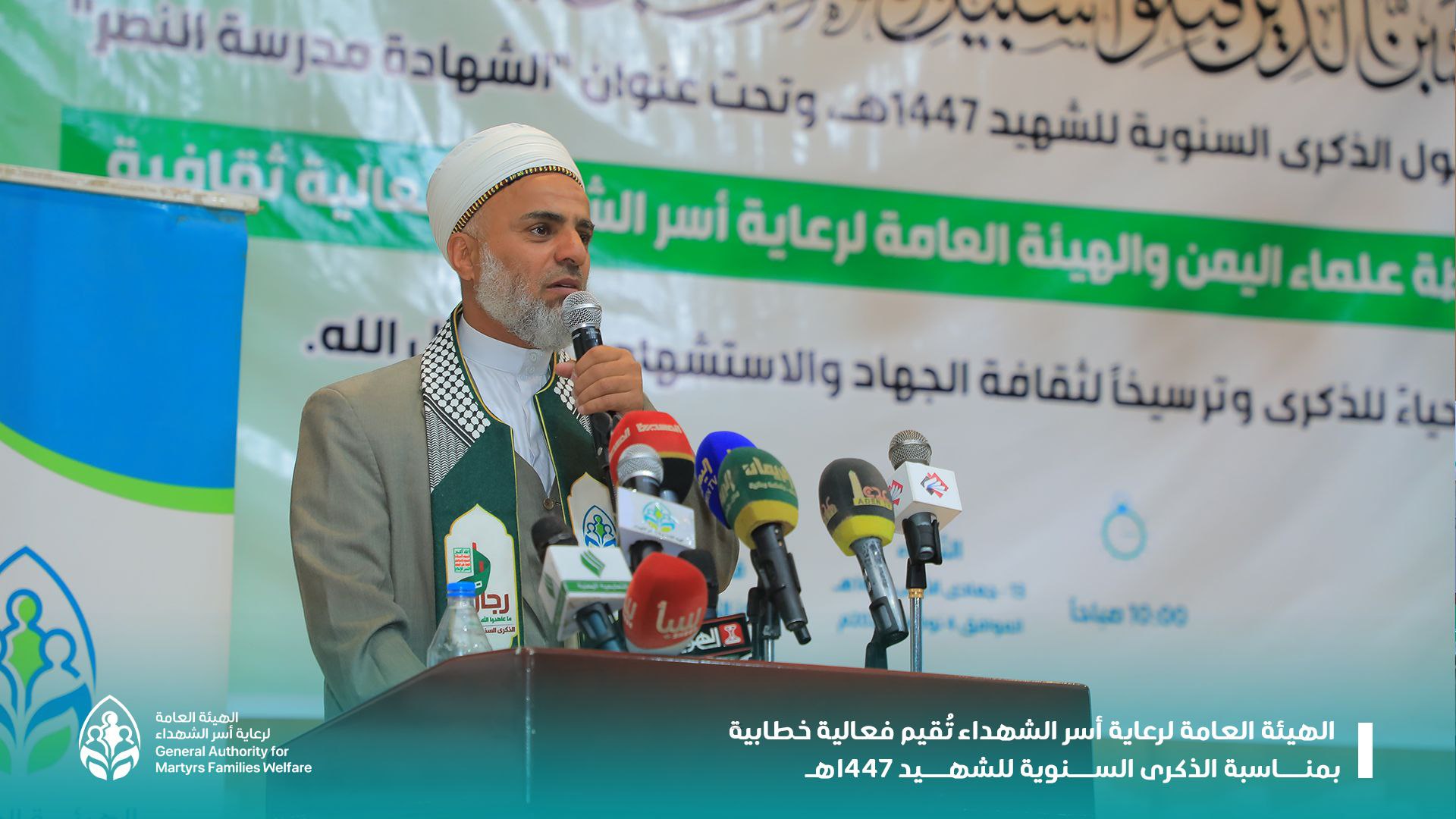 أقامت الهيئة العامة لرعاية أسر الشهداء ورابطة علماء اليمن،اليوم فعاليةً ثقافية مركزية بعنوان الشهادة مدرسة النصر بمناسبة الذكرى السنوية للشهيد، ، بحضور مفتي الديار اليمنية السيد العلامة شمس الدين شرف الدين، ورئيس الهيئة العامة لرعاية أسر الشهداء الأستاذطه أحمد جران،وعدد من العلماء وأسر الشهداء وقيادات مؤسسات رسمية ومجتمعية. وفي كلمته خلال الفعالية، أكد مفتي الديار اليمنية السيد العلامة شمس الدين شرف الدين أن الجهاد في سبيل الله فريضة وواجبٌ إلهيٌّ يتطلب الإعداد النفسي والروحي الدائم، مشدداً على أن العدو الصهيوني ماضٍ في عدوانه على الأمة، ولن يوقفه إلا الجهاد في سبيل الله والثبات في مواجهة الباطل. وأشار إلى أن تصريحات قادة الكيان الإسرائيلي، وعلى رأسهم نتنياهو، حول استهداف اليمن تؤكد طبيعة الصراع وعدالة الموقف اليمني في الدفاع عن الأمة، لافتاً إلى أن كل من يتعاون مع أعداء الله ضد الإسلام والمسلمين إنما يقع في مستنقع الردة والانحراف عن مبادئ القرآن الكريم. كما شدد المفتي على أن الاهتمام بأسر الشهداء واجب ديني وإنساني، يعكس الوفاء لتضحياتهم العظيمة، داعياً إلى تعزيز التكافل والإحسان تجاه هذه الفئة التي قدّمت فلذات أكبادها فداءً للوطن والدين. من جانبه، رحّب رئيس الهيئة العامة لرعاية أسر الشهداء الأستاذ طه أحمد جران بالحاضرين من العلماء وأسر الشهداء، معبّراً عن اعتزازه بالمقام الرفيع للشهداء الذين صنعوا بدمائهم العزة والكرامة. وأكد أن الهيئة تمضي في تنفيذ مشاريع الرعاية والتمكين لأسر الشهداء في مختلف المجالات، وفاءً لتضحياتهم واستلهاماً لدروسهم في الإخلاص والثبات. وأوضح أن هذه الذكرى الخالدة تأتي وشعبنا ومعه أحرار الأمة يخوضون معركة الوعي والجهاد ضد العدو الصهيوني، مدعومين بعقيدة راسخة وإرثٍ من الصمود صنعه الشهداء، مؤكداً أن رعاية أسر الشهداء مسؤولية وطنية ودينية مشتركة تتطلب تكاتف الجميع مؤسساتٍ وأفرادًا لترجمة الوفاء بالعمل والرعاية الفعلية. كما تضمنت الفعالية ورقتين ثقافية، حيث تناول الدكتور حمود الإهنومي في ورقته "رعاية أسر الشهداء مسؤولية الجميع" أهمية الشراكة الوطنية والمجتمعية في رعاية أسر الشهداء، مشيراً إلى أن أسرهم أمانة في أعناق الجميع، والوفاء لهم يجب أن يكون عملاً مؤسسياً مستداماً. وقدّم الأستاذ طه الحاظري ورقة بعنوان "الشهادة عنوان النصر"، أكّد فيها أن الدماء الزكية التي قدّمها الشهداء كانت الأساس في ما يعيشه اليمن وأحرار الأمة اليوم من عزةٍ وتمكينٍ وانتصاراتٍ متتالية، مشيراً إلى أن الشهداء سيبقون المنارة التي تهدي الأمة في طريقها نحو الحرية والاستقلال. وتخلل الفعالية فقراتٍ إنشادية وفلاشاتٍ وثائقية عبّرت عن عظمة الشهداء ومكانتهم السامية، وتجسيداً لوفاء أبناء الشعب اليمني لتضحياتهم الخالدة، وسط تفاعلٍ كبيرٍ من الحضور الذين أكدوا استمرارهم في السير على درب الشهداء حتى تحقيق النصر الكامل.