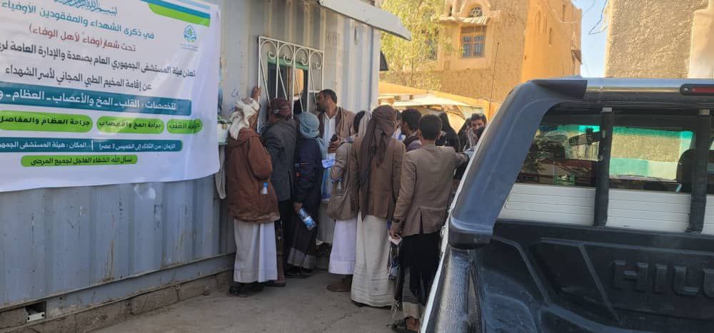 تواصل الإدارة الصحية التابعة لفرع الهيئة العامة لرعاية أسر الشهداء بمحافظة صعدة، ولليوم الثاني على التوالي، تنفيذ المخيم الطبي الجراحي المجاني في مستشفى الجمهوري العام بمدينة صعدة، ضمن جهود الهيئة في تقديم الرعاية الصحية لأسر وذوي الشهداء، تزامناً مع اقتراب الذكرى السنوية للشهيد 1447هـ. وشهد المخيم إقبالاً واسعاً من المستفيدين من أسر الشهداء، حيث جرى خلال اليوم الثاني معاينة عشرات الحالات المرضية وإجراء عدد من العمليات الجراحية المجانية في تخصصات متعددة شملت القلب والمخ والأعصاب والعظام والمفاصل، بإشراف نخبة من الأطباء والاستشاريين. وأكد القائمون على المخيم أن إقامة هذه الفعالية الطبية تأتي في إطار الاهتمام والرعاية المستمرة التي توليها الهيئة لأسر الشهداء، تقديراً لتضحياتهم الكبيرة في سبيل الله والوطن، مشيرين إلى أن المخيم سيستمر خلال الأيام القادمة في تقديم خدماته الطبية المجانية بمختلف التخصصات. وأوضحوا أن هذه الأنشطة تعكس حرص الهيئة على تعزيز الخدمات الإنسانية والصحية المقدمة لأسر الشهداء، بما يسهم في تخفيف معاناتهم وتوفير الرعاية اللازمة لهم، مؤكدين أن الاهتمام بأسر الشهداء هو واجب وطني وإنساني وأخلاقي تقديراً لمن قدّموا أرواحهم دفاعاً عن الوطن
