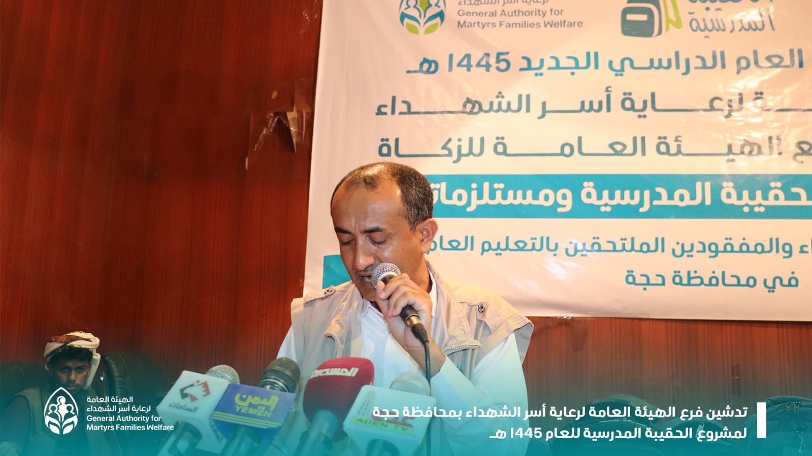 دشن فرع الهيئة العامة لرعاية أسر الشهداء بمحافظة حجة وبالشراكة مع الهيئة العامة للزكاة اليوم مشروع الحقيبة المدرسية ومستلزماتها لأبناء الشهداء والمفقودين بمحافظة حجة. يستهدف المشروع ثلاثة آلاف و745 من أبناء الشهداء والمفقودين الملتحقين بالتعليم العام. وفي التدشين الذي حضره وكيل الهيئة العامة لرعاية أسر الشهداء لقطاع الرعاية الاجتماعية حسين القاضي،ومدير فرع هيئة رفع المظالم القاضي عبدالمجيد شرف ،ومدير مكتب التربية والتعليم على القطيب وعدد من المكاتب التنفيذية ثمن وكيل المحافظة محمد القاضي اهتمام القيادة الثورية والمجلس السياسي الأعلى وهيئتي رعاية أسر الشهداء والزكاة بأبناء الشهداء والمفقودين. واعتبر القاضي ما يتم تقدّيمه لهذه الشريحة، أقل واجب نظير تضحيات الشهداء في الدفاع عن الوطن وأمنه واستقراره .. مؤكداً أهمية دور كافة المكاتب التنفيذية في مساندة جهود الهيئة في هذا الجانب. من جانبه أشار مدير مكتب هيئة الزكاة بالمحافظة فايد الملاهي إلى أن دعم أسر وأبناء الشهداء والمفقودين من أولويات خطط وبرامج الهيئة نظير ما قدمه الشهداء من تضحيات وبطولات دفاعاً عن الأرض والعرض والسيادة الوطنية. ومن جهته استعرض مدير فرع الهيئة العامة لرعاية أسر الشهداء بالمحافظة مطهر صفي الدين المشاريع التي نفذتها الهيئة وتهدف الى رعاية واهتمام بأبناء وأسر الشهداء والمفقودين بالتعاون مع هيئة الزكاة. وتخلل التدشين كلمة أبناء الشهداء التي ألقاها محمد إبراهيم الكحلاني، ثمنت اهتمام قائد الثورة السيد عبدالملك بدرالدين الحوثي ورئيس المجلس السياسي الأعلى وهيئتي رعاية الشهداء والزكاة بأبناء وأسر الشهداء. #عطاء_ووفاء